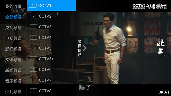 2、手机端用户可以直接点击左侧屏幕即可显示频道列表。