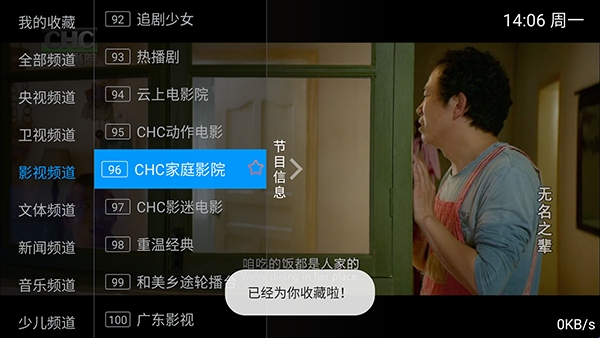 4、长按想要收藏的电视频道即可添加至我的收藏。
