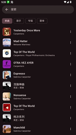 2、也有小众原创佳作,还有经典老歌翻新,用户可根据心情、场景自由选择,