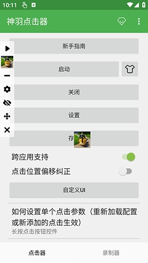 1、支持单点和多点点击,还可以自定义点击频率(每次点击高达0、1ms/s)和点击持续时间。