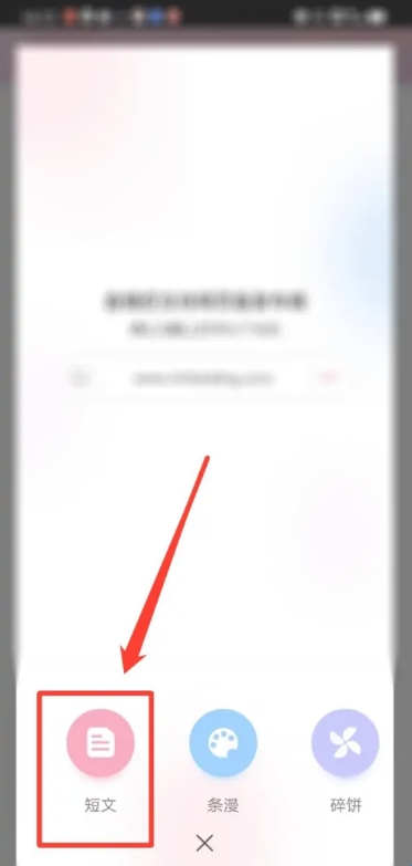 3、在弹出的选项中选择短文功能进入编辑页面。