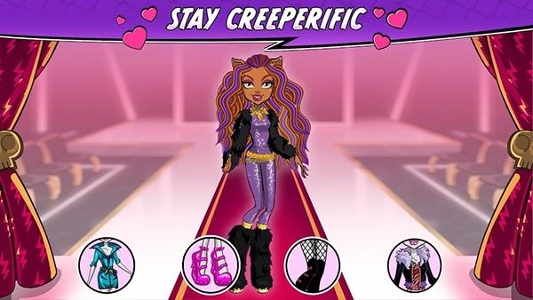 4、潮流服装搭配:与Clawdeen狼和朋友们一起,挑选各类服装,从摇滚明星到木乃伊风,搭配出无尽的个性风格。
