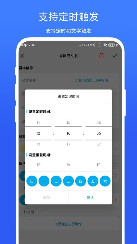 用户可以设置定时时间执行自动化,如:早上八点钉钉打卡,中午12点设置静音,晚上九点打卡飞行模式等等。