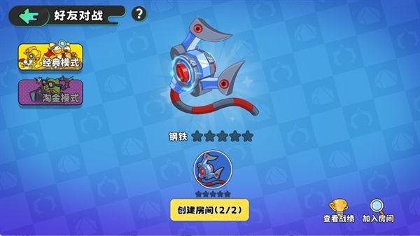2、在【好友对战】界面中,可在左侧选择【经典模式】或【淘金模式】,确认模式后点击下方的【创建房间】按钮。