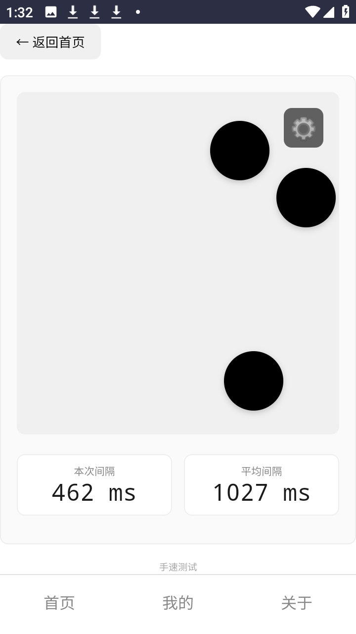 3、你可以通过点击小球的时间间隔来进行测试。