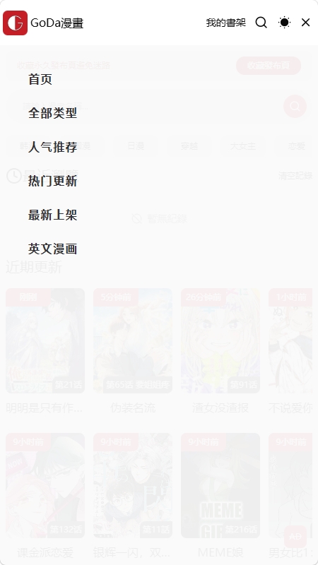 1、下载安装Goda漫画app,之后打开,进入首页;