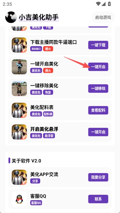 4、打开回到美化助手,点击”一键开启美化”即可。