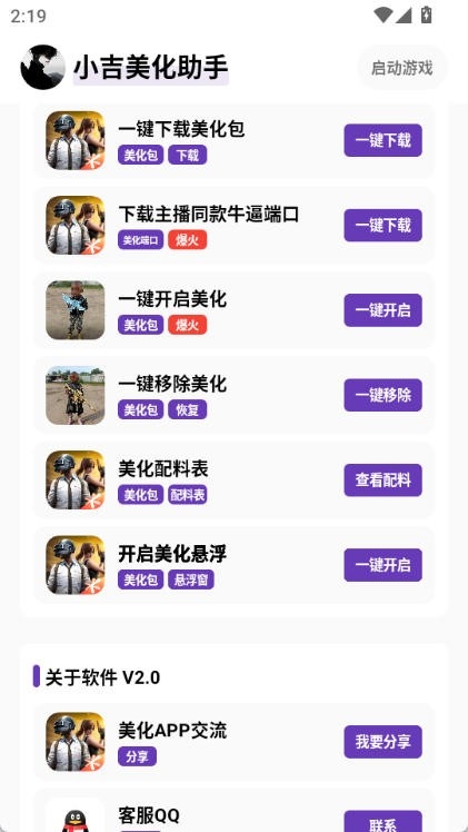 小吉至尊版美化包是一款专为手游和平精英打造的美化软件。在该软件中,你可以一键先按照并应用美化包,将其应用在游戏中,并且还可以选择开启悬浮窗,在游戏中可以自由更换美化效果,如果想要去除美化包也可以在软件中一键移除,使用起来非常的方便。
