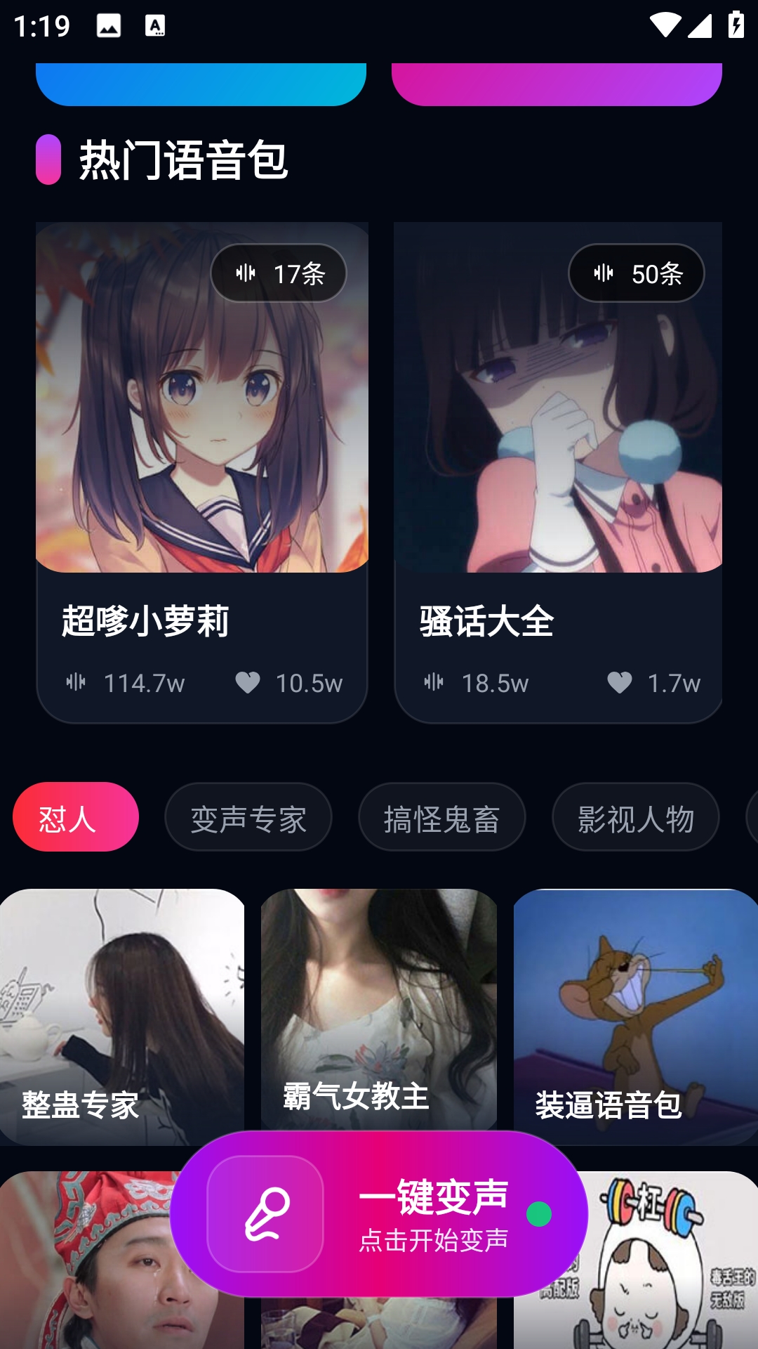 今天给大家推荐一款非常好用的变声器软件——UU王牌变声器。该软件中拥有的语音包非常的多,并且还将其进行了分类,有怼人、变声专家、搞怪鬼畜、影视人物等多个分类可以选择,还有一些热门语音包可以直接使用,开启悬浮窗后还可以到其他软件中实现变声哦。