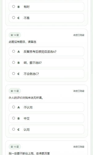 2、专业性缺失,无科学支撑,测试结果不具备任何参考意义,不可作为人格判断的依据。