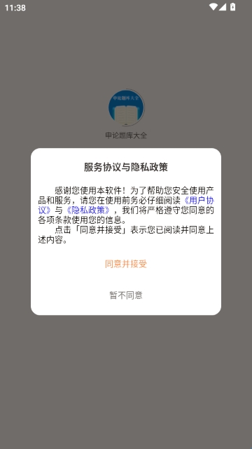 1、首次启动应用,阅读《用户协议》与《隐私政策》,点击“同意并接受”进入主界面。