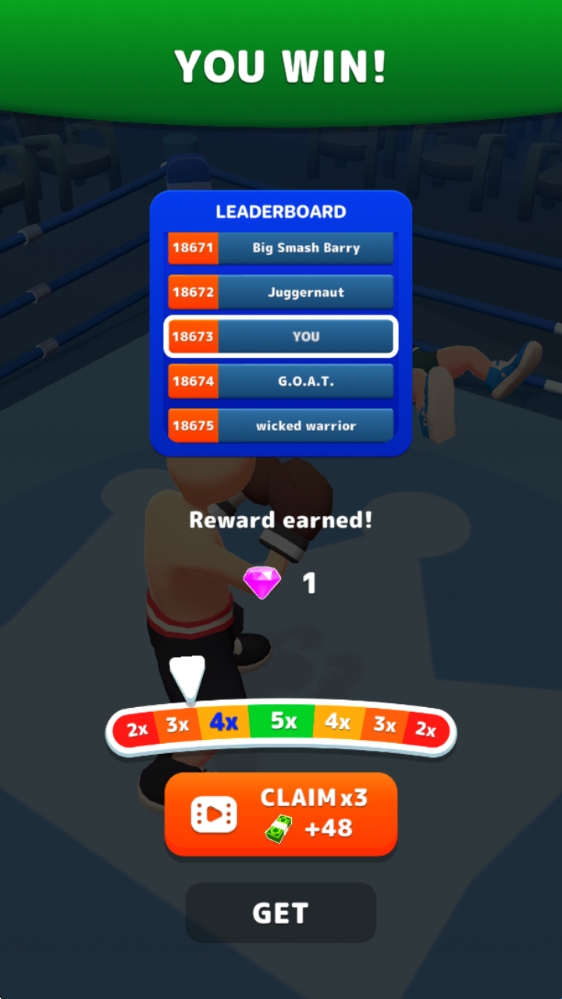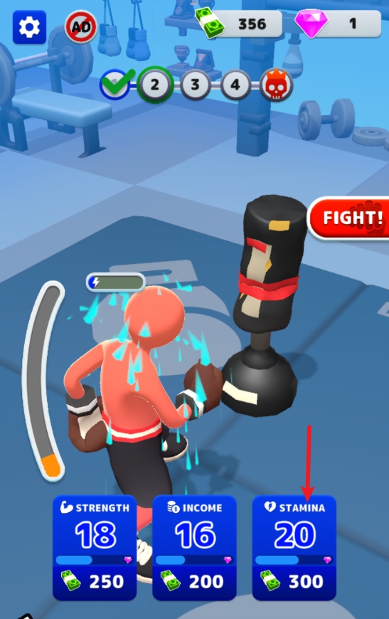 1、游戏中点击屏幕即可控制拳击手击打沙包,获得奖励,每次击打则是需要消耗耐力。