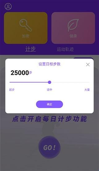 3、当然,开始之前还需要给自己设置一个目标步数,滑动选择,点击“确定”。