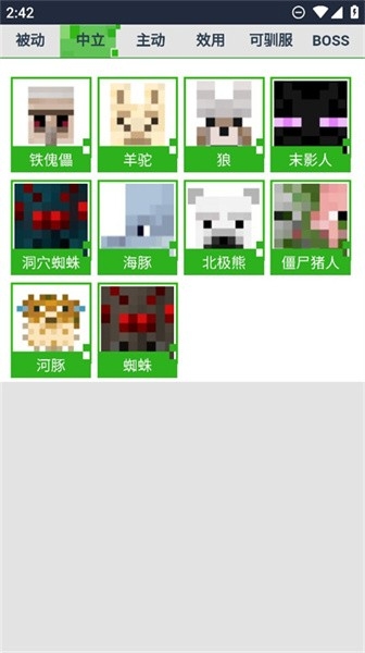 3、这款应用为玩家提供了全面的生物列表,包括所有类型的生物,不仅有纯敌对生物,还有可驯化的动物和友善的NPC。
