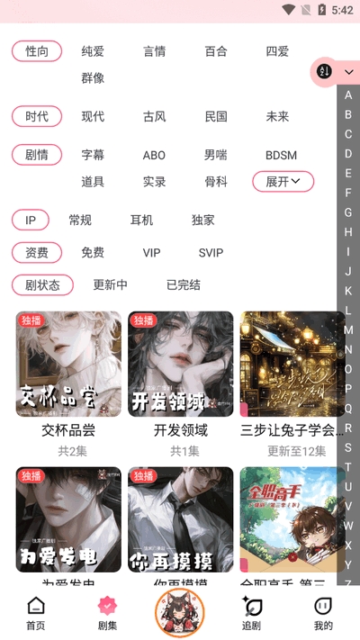 在乐可广播剧中,你可以看到有许多的广播剧资源可以听,软件里对各种广播剧设置了详细的分类,纯爱、言情、百合、现代、古风等,都可以进行筛选,并且还内置了大量的免费资源,可以随意的播放倾听哦!不知道听什么,还可以在首页中查看本周热门,有大量的独占广播剧可以找到。