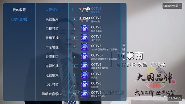 央视、卫视、地方台,超百路高清直播随时预约,随心收看。