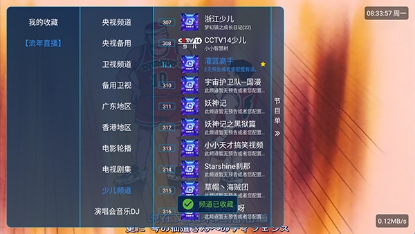 4、长按想要收藏的电视频道即可添加至我的收藏。