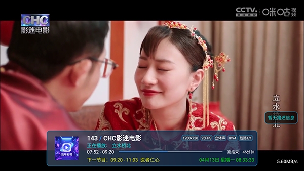 2、手机端用户点击左侧屏幕可以唤起电视频道列表。