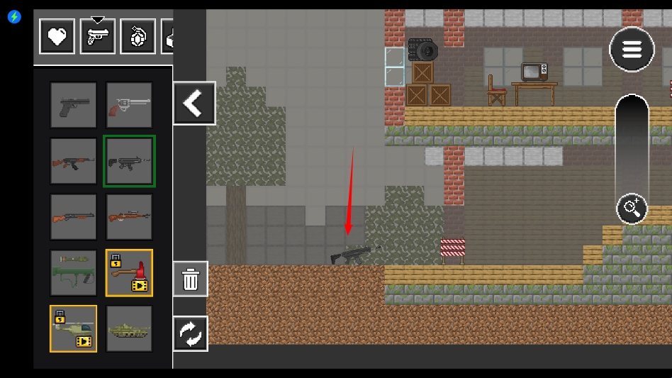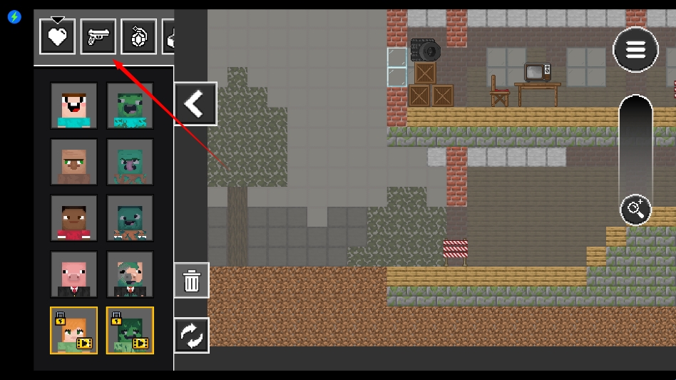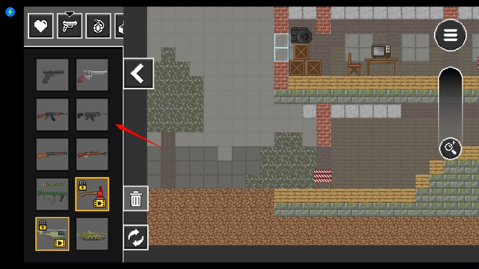 1、点击左侧编辑菜单中的武器图标,如图所示
