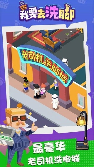 想不想拥有一家属于你自己的洗浴中心?在我要去洗脚这款游戏中,你将白手起家,从0开始创业一家洗浴中心,使用你独特的慧眼,投资项目,发展自己的洗浴中心,设计不同的洗浴项目,不断的吸引顾客,打造属于自己独一无二的洗浴王国。