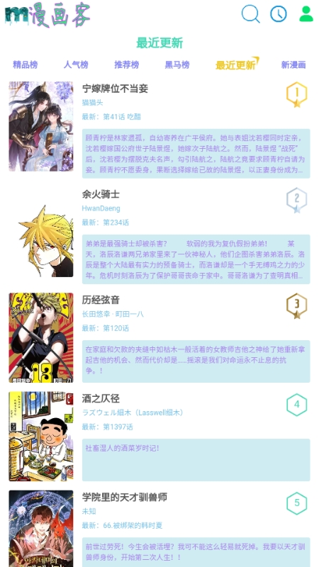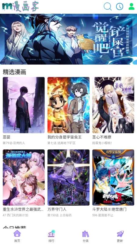 喜欢看漫画的用户一定不能错过的一款漫画软件——漫画客。漫画客中的ui界面非常的简单,但是功能完善,首页中有着一些推荐漫画,可以根据用户的观看习惯而变化,还有排行榜,这里可以知晓当前的漫画潮流,内置搜索功能,让你轻松找到想看的漫画。