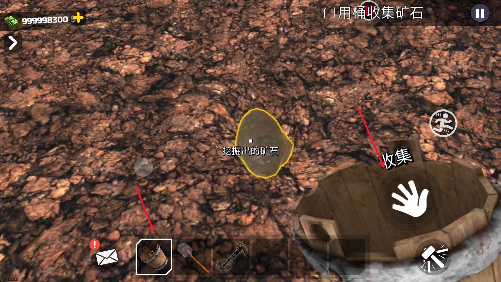 用黄金探测器捕捉信号,用铲子挖掘并收集矿石!