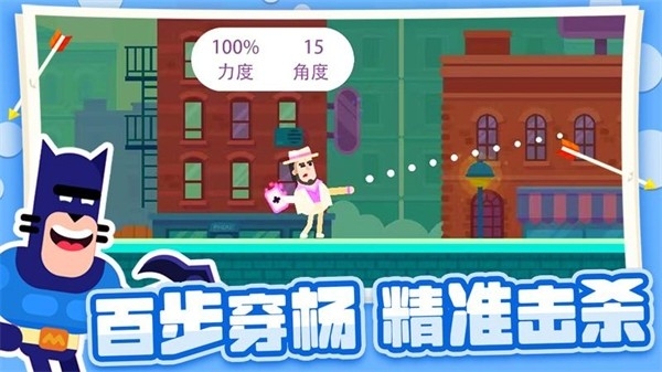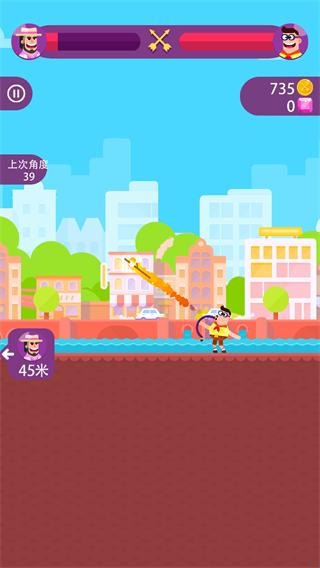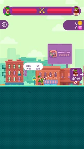 1、玩法就是拉弓箭,玩家可以控制弓箭的力度和角度,让弓箭发射出去,准确射到对方的身上。