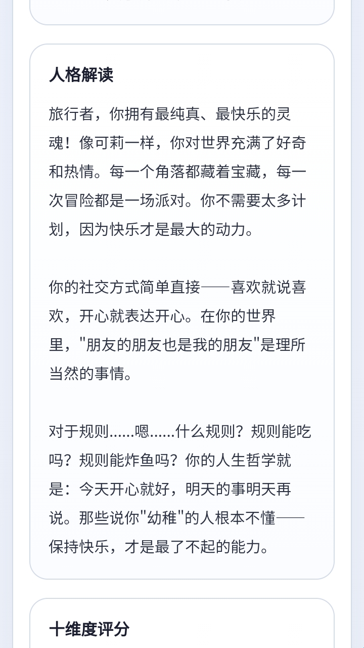 4、就会生成一个专属于你的人格报告了。