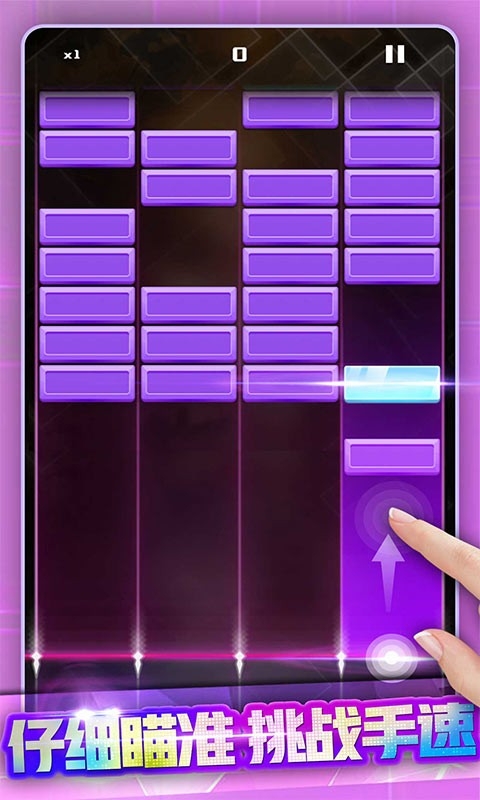 节奏打砖块是一款十分考验手眼配合能力的游戏,玩家在游戏中需要跟着节奏以及方块点击,找准时机点击获得高分,游戏结合了音乐游戏与方块点击游戏,玩家可以在游戏中享受到视听盛宴,玩家还可以与来自世界各地的玩家pk。