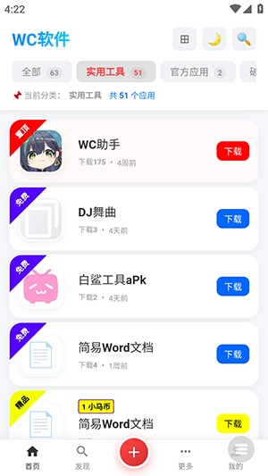 今天给大家带来一款收录了许多软件资源的软件库——WC资源软件库。该软件中的软件种类有很多,影视、美化、工具等等应有尽有,可以在这里寻找自己需要的软件进行下载;找到感兴趣的软件后点击可以进入软件的详情页,在这里有软件介绍和软件实机截图,避免下载到自己不需要的软件。