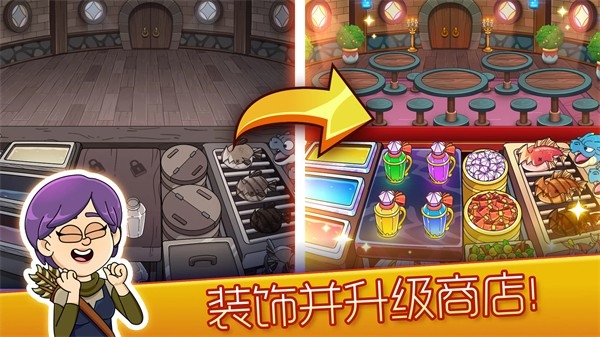4、装饰并翻新你各地的商店,让它们车水马龙、络绎不绝,厨房可要忙翻了,升级你的器械,将利润最大化。
