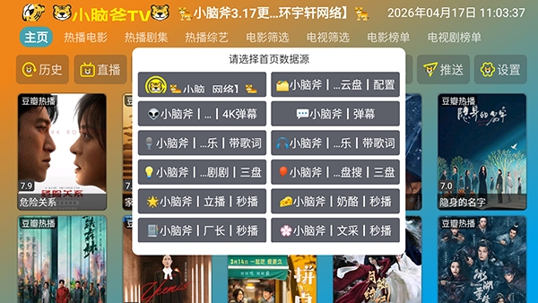 1、软件自带影视源接口配置,点击首页选项可以切换影视源接口。