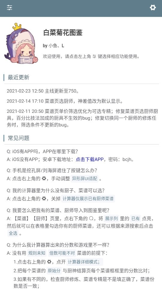 1、提供菜谱与角色数据查询功能,方便快速了解游戏内容结构。
