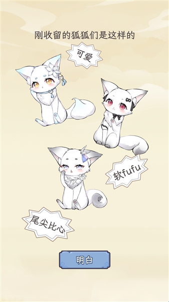 1、丰富的狐妖种类,玩家可以收留来自青丘、昆仑、有苏等地的狐妖,每个地方的狐妖都有独特的长相和颜色。