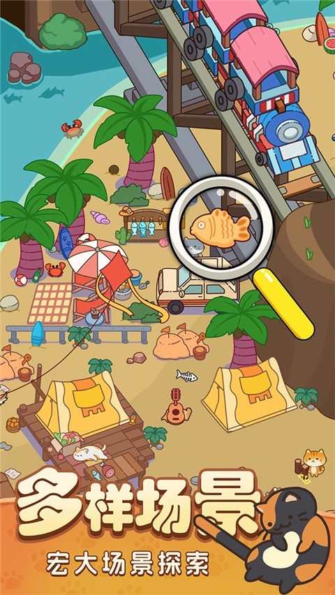 这款游戏中,我们将穿梭于猫间百态的公园中、于夏日清凉的海滩上、于各式各样其他场景中。