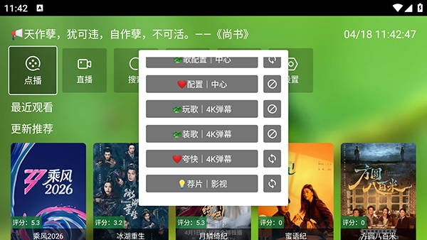 在君享影院中,你可以体验一个最为纯净的观影环境,软件中没有过多的其他元素,也不含广告信息,并且需要用户自行配置后才可以使用哦;你可以对点播和直播分别添加源,对应着点播和直播两个板块,如果没有想看的影片时就可以前往直播板块中看看频道直播哦。