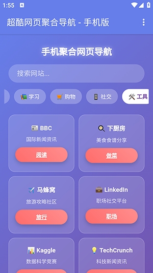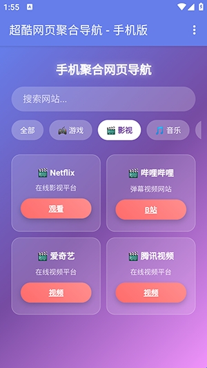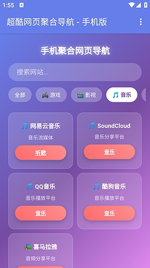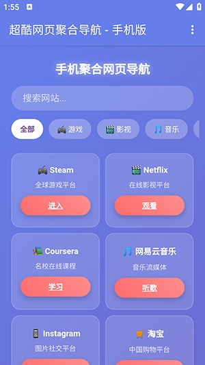 你是否会有一些经常需要使用的网站?但是又怕自己记不住?那么不妨来手机聚合网页导航中体验一下。软件中初始便内置了大量的网页站点导航,可以通过点击对应的站点直接进行跳转,前往对应的网页中浏览,也可以直接在搜索中进行搜索,内置了多个搜索引擎可以使用哦。