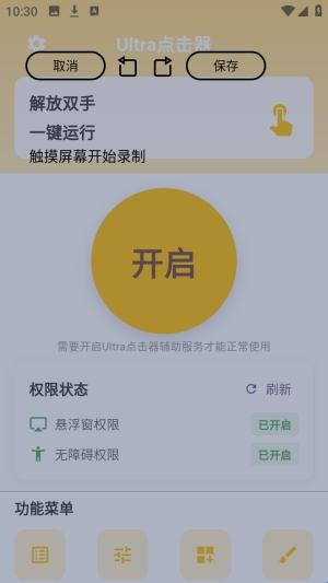 1、打开软件需要开启无障碍和悬浮窗权限。
