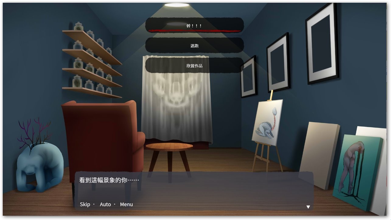 流血画家恋爱游戏是一款病娇风格的视觉小说游戏,游戏中玩家被一个变态杀人魔给囚禁在地下室,我们需要趁着杀人魔没有防备的时候,溜出去寻找线索,每一个不同的场景都有不同的线索与支线剧情,玩家做出不同的选择,将会影响剧情的后续发展。