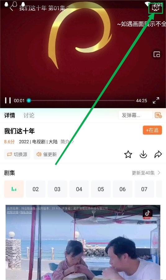 2、点击右上角的投屏按钮,然后点击与投屏设备名称一致的名称