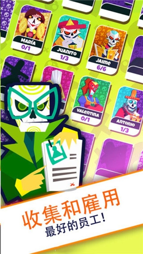 偷懒的死亡大亨是一款题材十分新颖的经营游戏,游戏里的角色设计都十分卡通怪异,作为一家工厂的老板,玩家可以招募各种各样的员工为我们打工,他们可以是动物也可以是怪物,玩家必须要确保工厂的效率提升上去,吸引更多的顾客光顾。