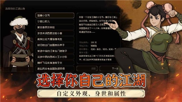 3、丰富出身:游戏提供了多个不同的出身选择,每个出身都有独特的初始属性和专属武功,增加了游戏的多样性和可玩性。
