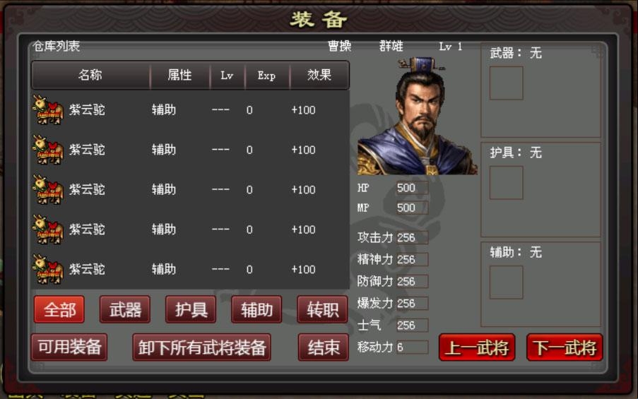2、进入战斗环节,这里我们先来分配辅助装备。