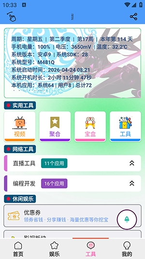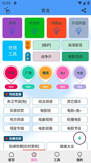 一款可以观看电视直播的软件——青龙助手。该软件中拥有的电视频道非常丰富,央视的各个频道,还有一些专辑频道,全部都可以在这里观看,除了电视直播外,一些小品、戏曲、舞蹈、电影等影片也可以自由点播哦,并且还有一些实用的小工具可以使用。
