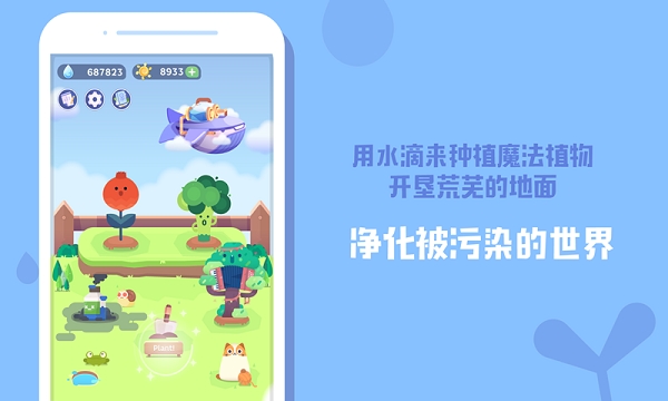 3、培育植物 - 使用雨滴来发现/种植可爱的植物