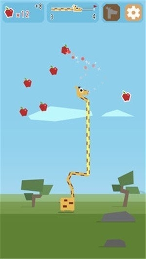 3、发挥自己的想象力,将长颈鹿的脖子进行各种形态的变换,顺利吃到每一个果子,非常好玩。