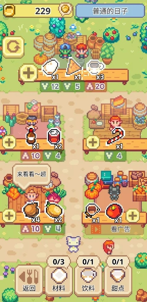 1、经营猫咪专属饭店,吸引猫咪与顾客光临,享受治愈互动。