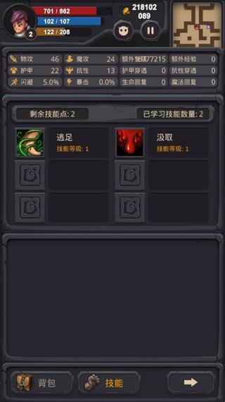 还是数值问题,前期最合算的技能是金币掉落,几个直接提高属性的技能,这些在前期收益大于装备提升。中期是装备起来了,直接吸血回血这些技能强度大于加攻防。到后期暴击连击暴伤比较有搞头。