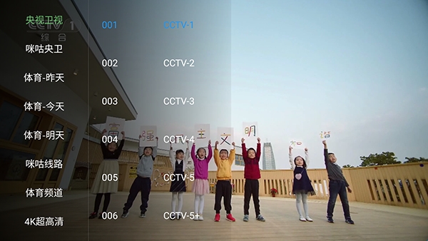 2、点击左侧屏幕可以唤起电视频道列表。
