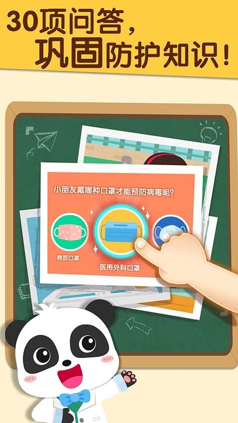 产品设计20+项问答题,同时增加答案的解释说明,不仅能检测宝宝的记忆效果,还能巩固宝宝的防护知识。